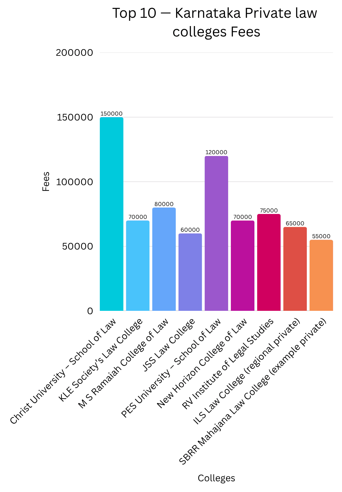 | 5 | RV Institute of Legal Studies (RV College group) | Private | 1,00,000–3,00,000 | B.B.A. LL.B, B.A. LL.B | Bengaluru |