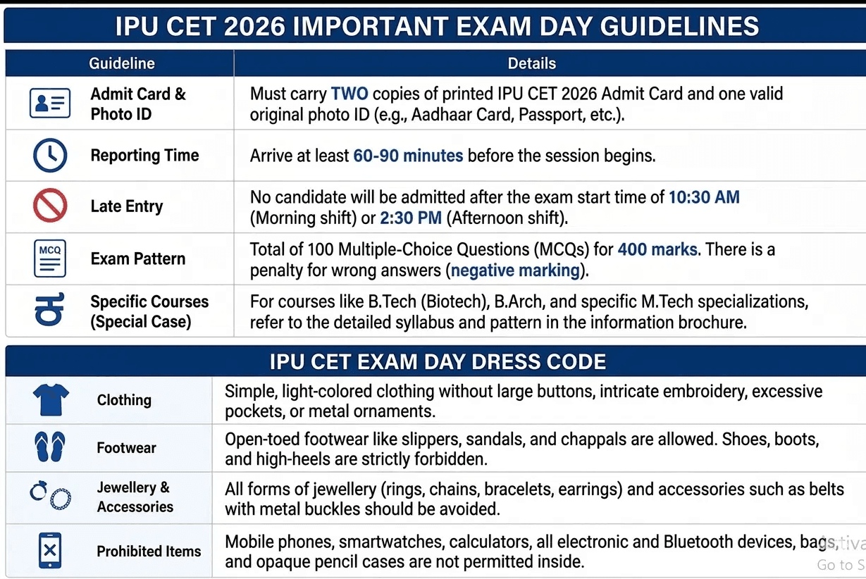 IPU CET 2026 Exam Day Guidelines